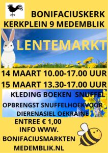 MEDEMBLIK – Komend weekend, zaterdag 14 en zondag15 maart is er weer een Lentemarkt in de prachtige locatie: de Bonifaciuskerk in Medemblik. Er zijn drie afdelingen: Kleding, Boeken, en Snuffel/Brocante. De boekenafdeling geeft weer een keur aan boeken in alle categorieën, zoals thrillers, romans, reisboeken, kookboeken, kinderboeken en nog vele