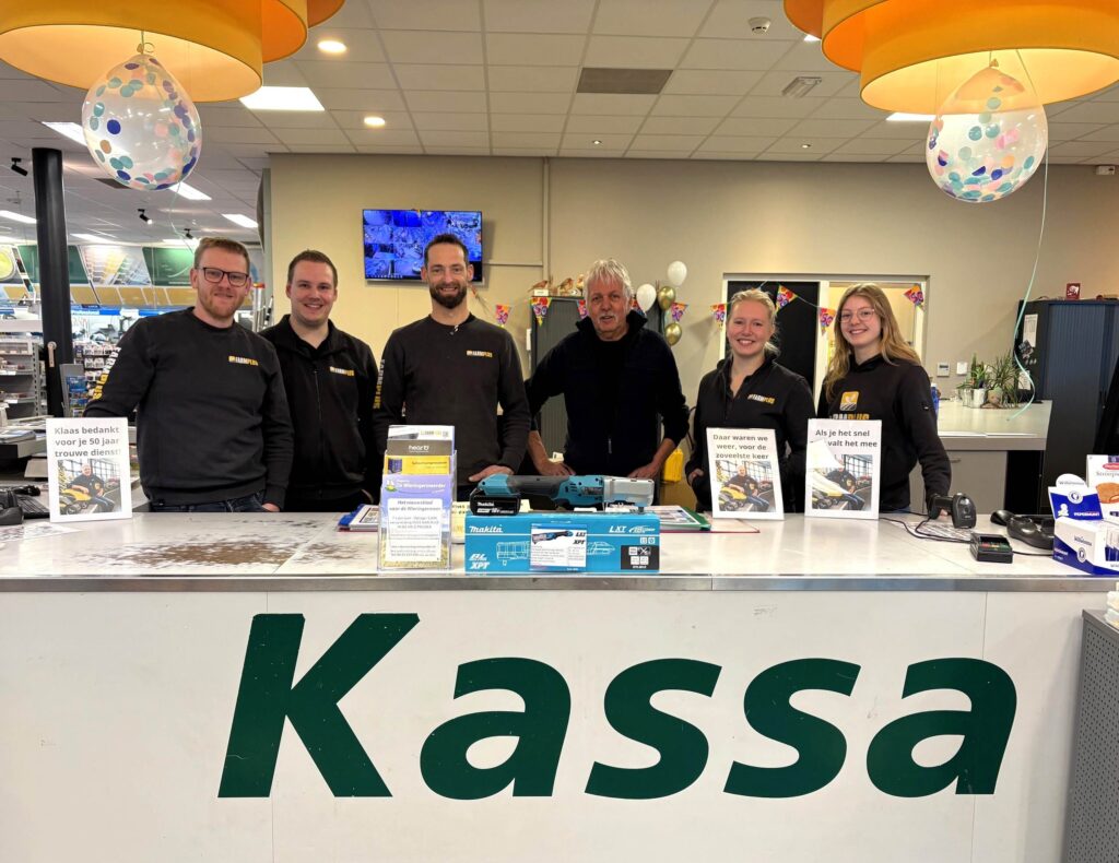 Nu zit het erop. Klaas ‘mocht’ 50 jaar naar zijn werk en geeft aan: “het voelde nooit als ‘moeten’. Ik ging er altijd fluitend naar toe”. Al die jaren was de bedrijfsleider in de winkel te vinden en was zo al die tijd wel het gezicht van de zaak.