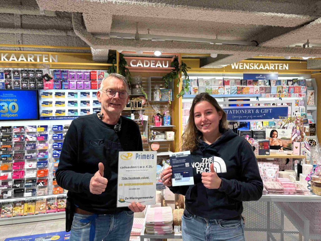 WIERINGERWERF – Op de laatste dag van het jaar kon Chiara Smit uit Wieringerwerf de Primera Wieringerwerf-cadeaubon van maar liefst € 25,- ophalen. Ze hoefde er geen moeilijke puzzel voor op te lossen. Het feit dat ze tijdig De Wieringermeerder op facebook volgde zorgde er al voor dat ze in de running was voor de prijs. Bij 750 volgers (of meer op het moment) werd er namelijk een winnaar geloot. Chiara, van harte gefeliciteerd met je prijs en Primera Wieringerwerf, bedankt voor het beschikbaar stellen ervan.