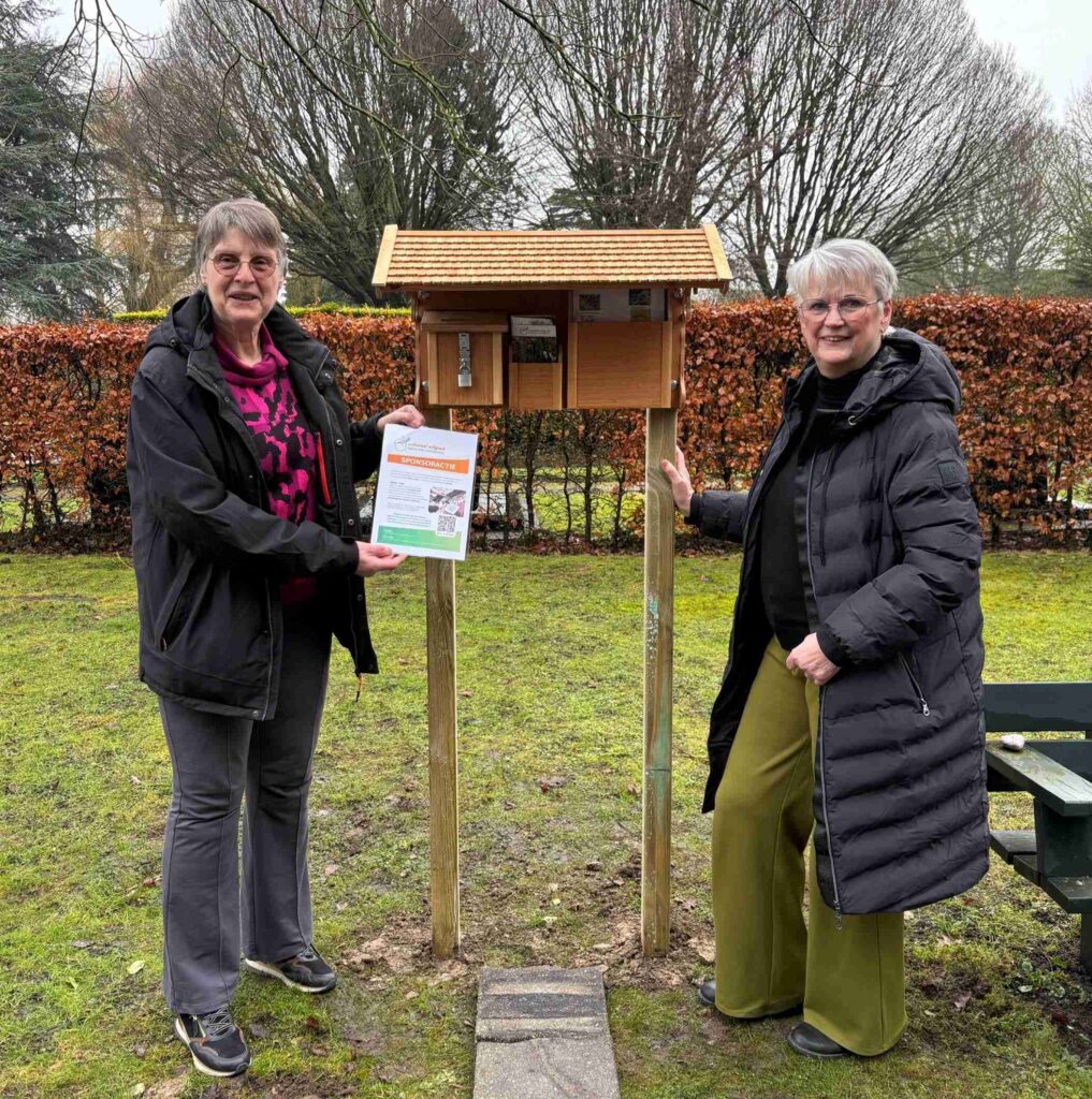 MIDDENMEER – Op de begraafplaats in Middenmeer is donderdagochtend 12 februari een bord geplaatst met foldertjes en gesealde informatie over de bloeiwijze van bepaalde bomen op het terrein. Twee mannen van de tuinploeg hebben het bord met behulp van een grondboor neergezet. Bezoekers kunnen ook een briefje aan een overledene in het brievenbusje van ‘Hemelsepost’ achterlaten. Dit busje wordt eens per jaar geleegd en de inhoud wordt ceremonieel verbrand, zodat de brieven symbolisch naar de hemel gaan. De briefjes blijven geheim en worden niet gelezen. Het bord is gemaakt door J. van der Veen. Er is een folder die men mag meenemen en een folder over de sponsoractie, deze graag weer terug plaatsten, zodat anderen deze ook kunnen lezen. De stichting zamelt geld in om QR-codebordjes bij graven van mensen, die iets hebben betekend voor de Wieringermeer, te plaatsen. Ook worden verhalen verzameld van ouders of grootouders die hier begraven liggen, om zo de geschiedenis van de Wieringermeer vast te leggen. Heeft u nog verhalen over opa en oma of vader en moeder dan horen wij dit graag Ze kunnen ook een voorzitter of slotengraver geweest zijn.