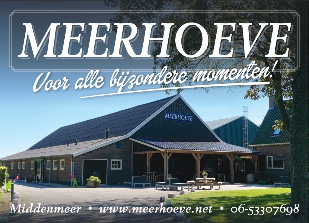 MIDDENMEER – Aan de rand van Middenmeer ligt de Meerhoeve; een sfeervolle en veelzijdige accommodatie die de afgelopen jaren is uitgegroeid tot een begrip in de Noordkop. Vanuit de wijde omgeving weten zowel particuliere als zakelijke gasten deze locatie te vinden voor uiteenlopende bijeenkomsten, van bruiloften en familiefeesten tot vergaderingen en bedrijfsactiviteiten.