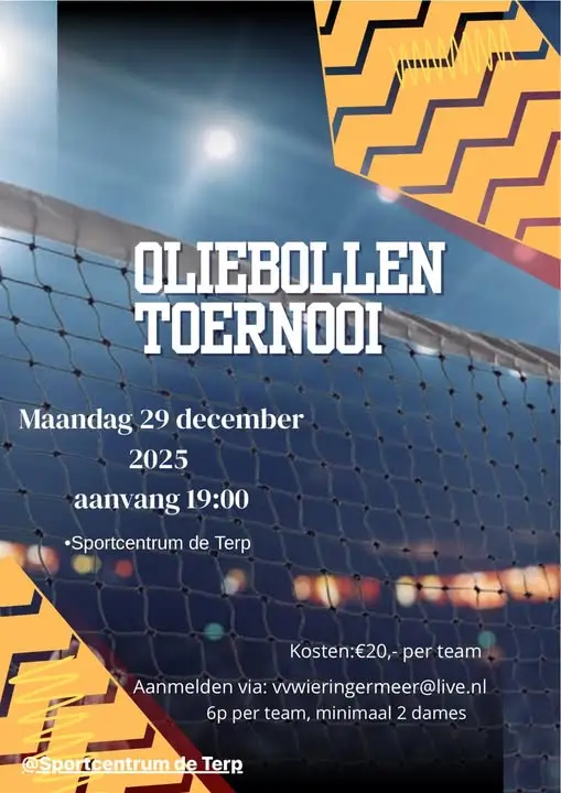 WIERINGERWERF – Het jaarlijkse oliebollentoernooi op maandag 29 december komt er weer aan!  De aanmeldingen gaan al lekker! Ook zin in een avond volleyballen met vrienden, collega’s of sportmaatjes? Meld je dan aan voor het oliebollentoernooi!.