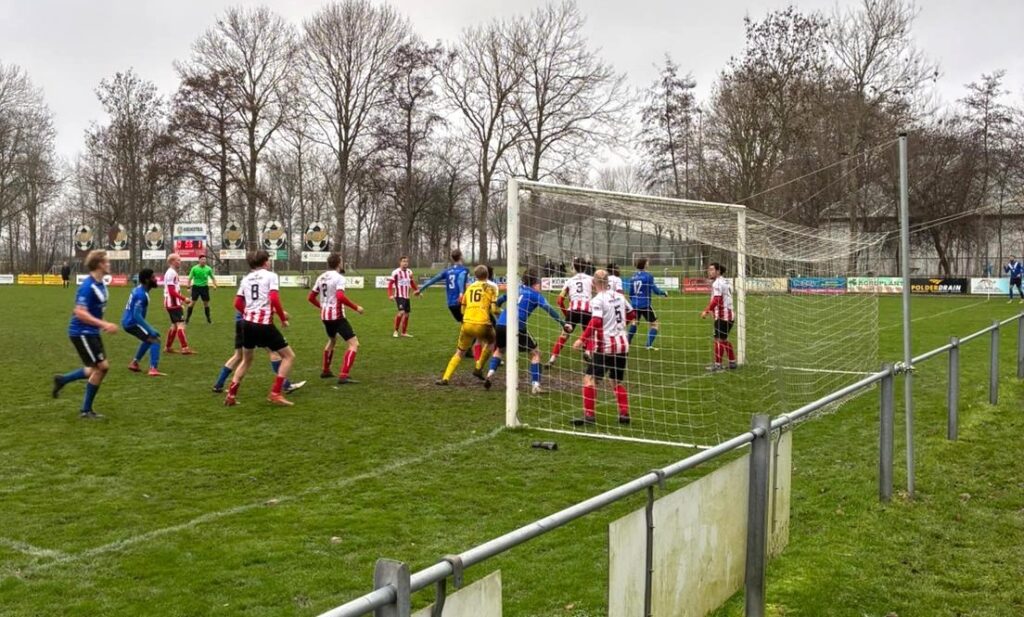 MIDDENMEER – Vandaag heeft Flevo thuis met 1-2 verloren van S.V. Spartanen uit Wognum. De eerste helft begonnen beide partijen rommelig met veel balverlies, toch wisten de Spartanen de 0-1 te scoren. In de tweede helft wist Flevo langzamerhand de overhand te krijgen en wist Sidney Schaafstra uiteindelijk, na een mooie steekpaas van Kelvin Zomerdijk, de 1-1 te produceren. Echter, Flevo vergat toen door te drukken en de Spartanen kwamen weer meer in de wedstrijd. Na een vrije trap kwamen de Spartanen weer op voorsprong, die ondanks aandringen van Flevo niet meer gekeerd kon worden. (foto: PK-Sports)